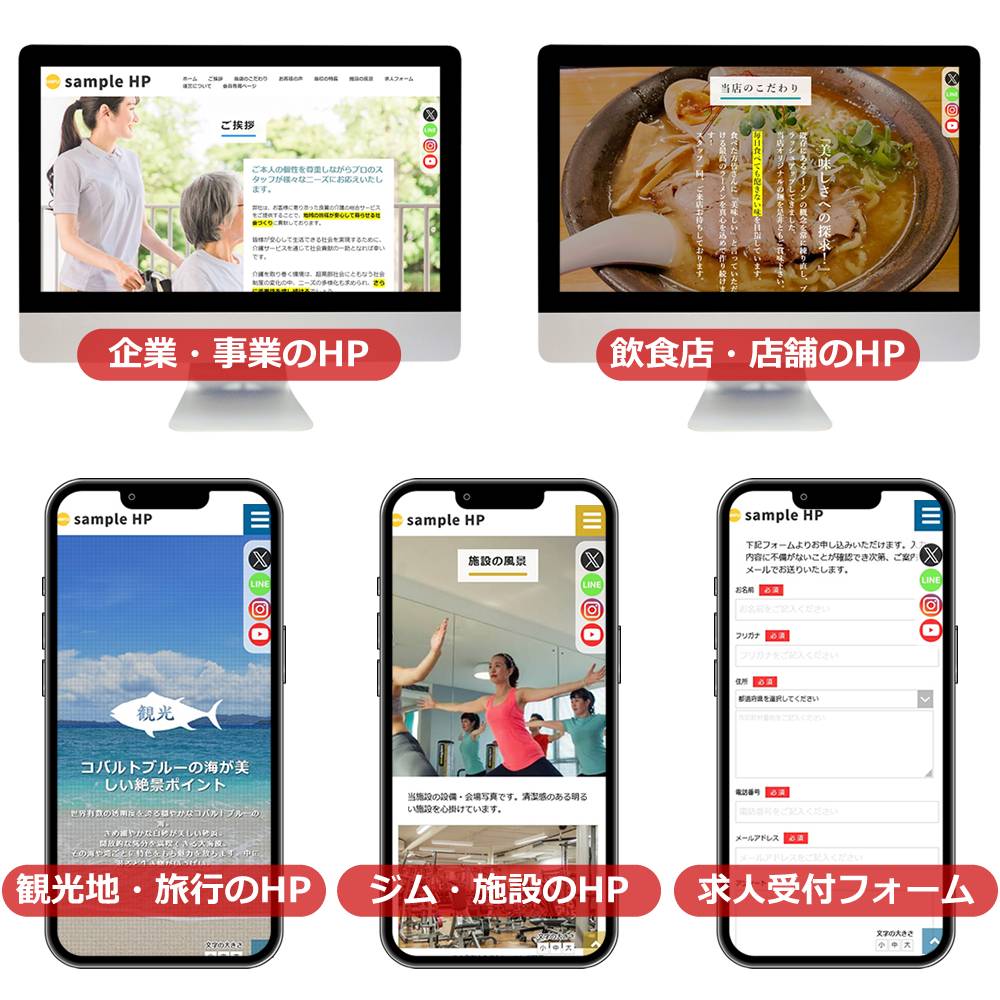 画面サイズに併せてホームページが最適表示されますので、パソコン、スマートフォン、タブレット、どれでも問題なく表示されます。